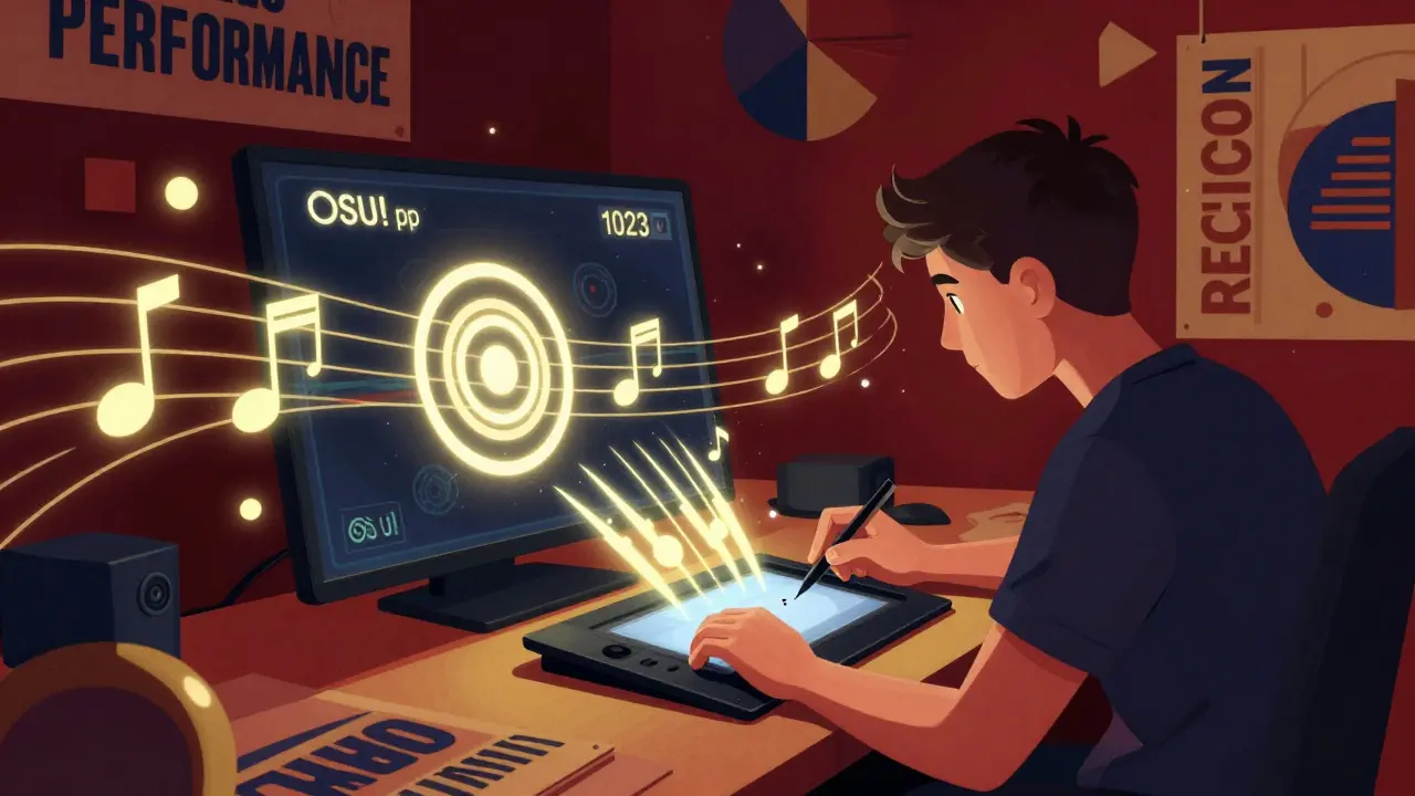 OSU! - бесплатная ритм-игра, превратившаяся в одну из самых сложных киберспортивных дисциплин. Топ-игроки набирают более 1000 pp, тренируют реакцию и точность, а сообщество создаёт миллионы карт без единого рубля спонсорства.